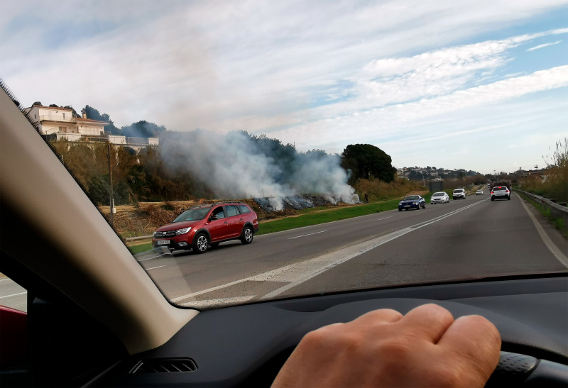 Судя по количеству дымов (местные крестьяне сжигают отходы сельхозпроизводства на своих участках), в Испании это разрешено. Вред экологии - нулевой: трава выросла - забрала из атмосферы углекислый газ, сгорела - вернула. Маленький бонус - корни не сгорели, будут понемногу гнить и удобрять почву.