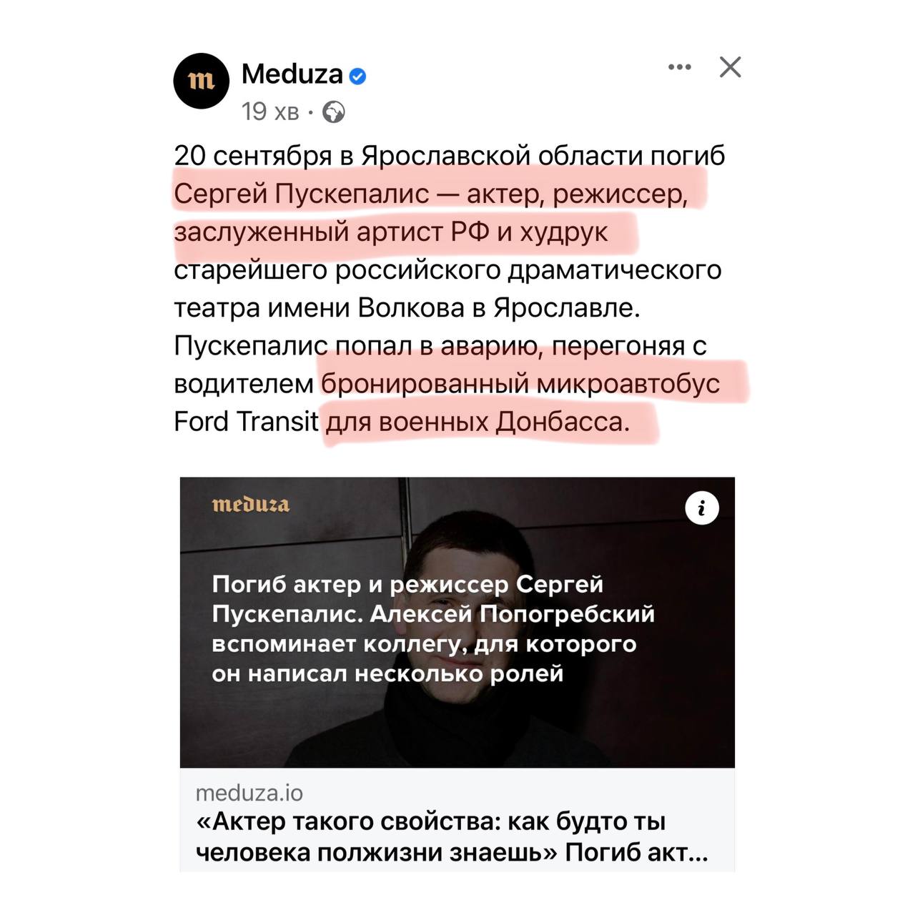 Вы напоминаете мне ворчливую соседку из моего детства)). Новость о гибели актёра, на какой машине рассказали, про Донбасс упомянули, в конце автор добавил даже немного сарказма. Вам тупо не хватило слова "мудак" в данном посте?