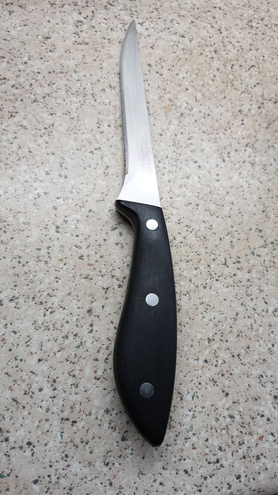 есть нож для хлеба, есть для филе, есть сечка и топорик, и куча дорогих ножей. но на каждый день именно этот простой нож. заточка в норме, точила его примерно через год пользования. в деле он уже около 3 лет.