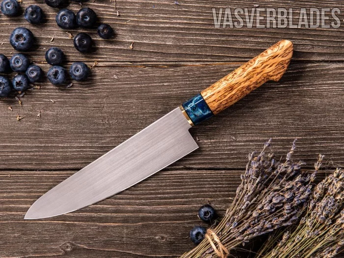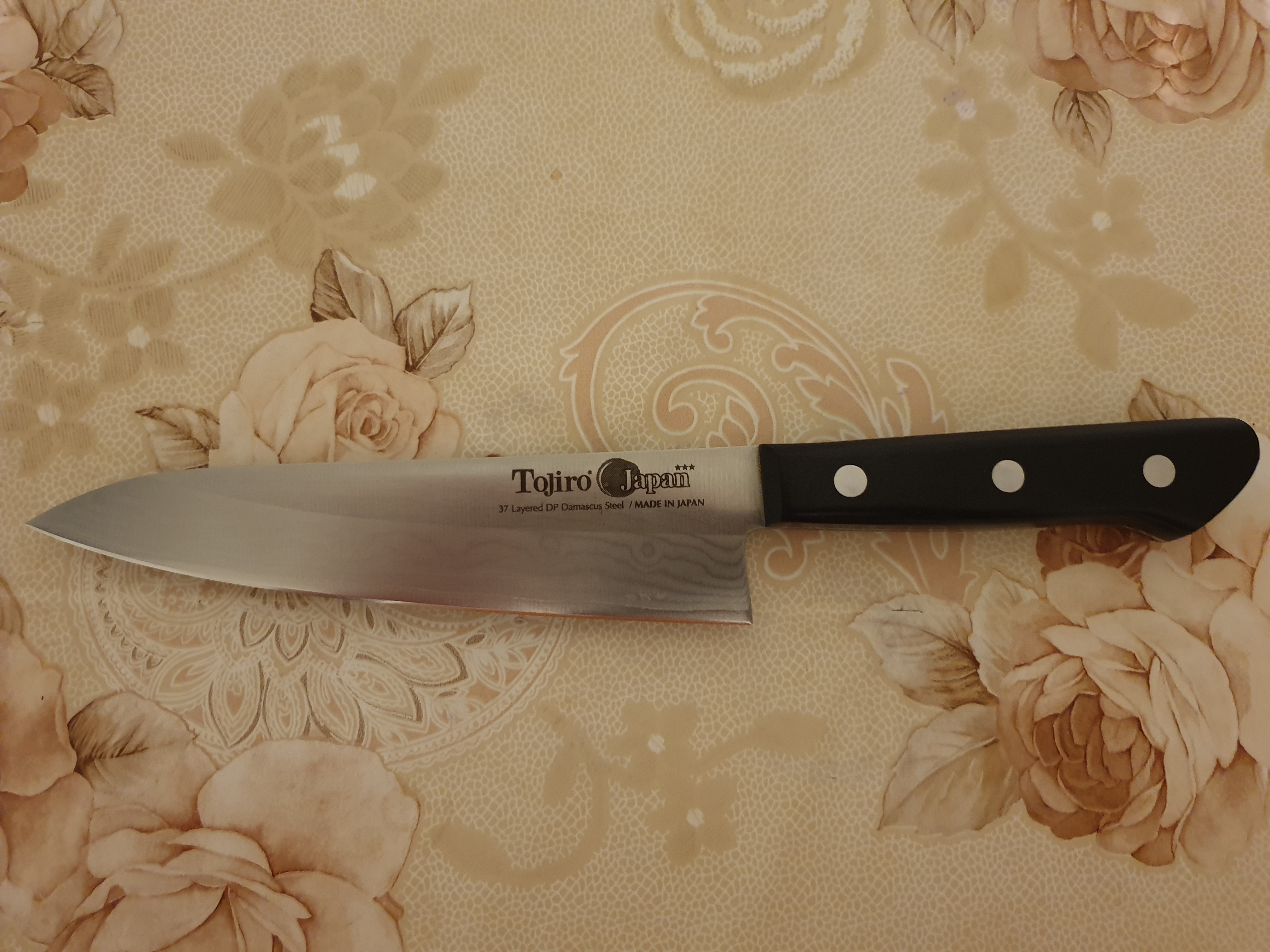 я после разговора с проф. поваром пошла в магаз для профессионалов и купила нож из стойки со всеми возможными модификациями ножей, обычный шеф с желтой ручкой за 17 евро. лучший мой нож.