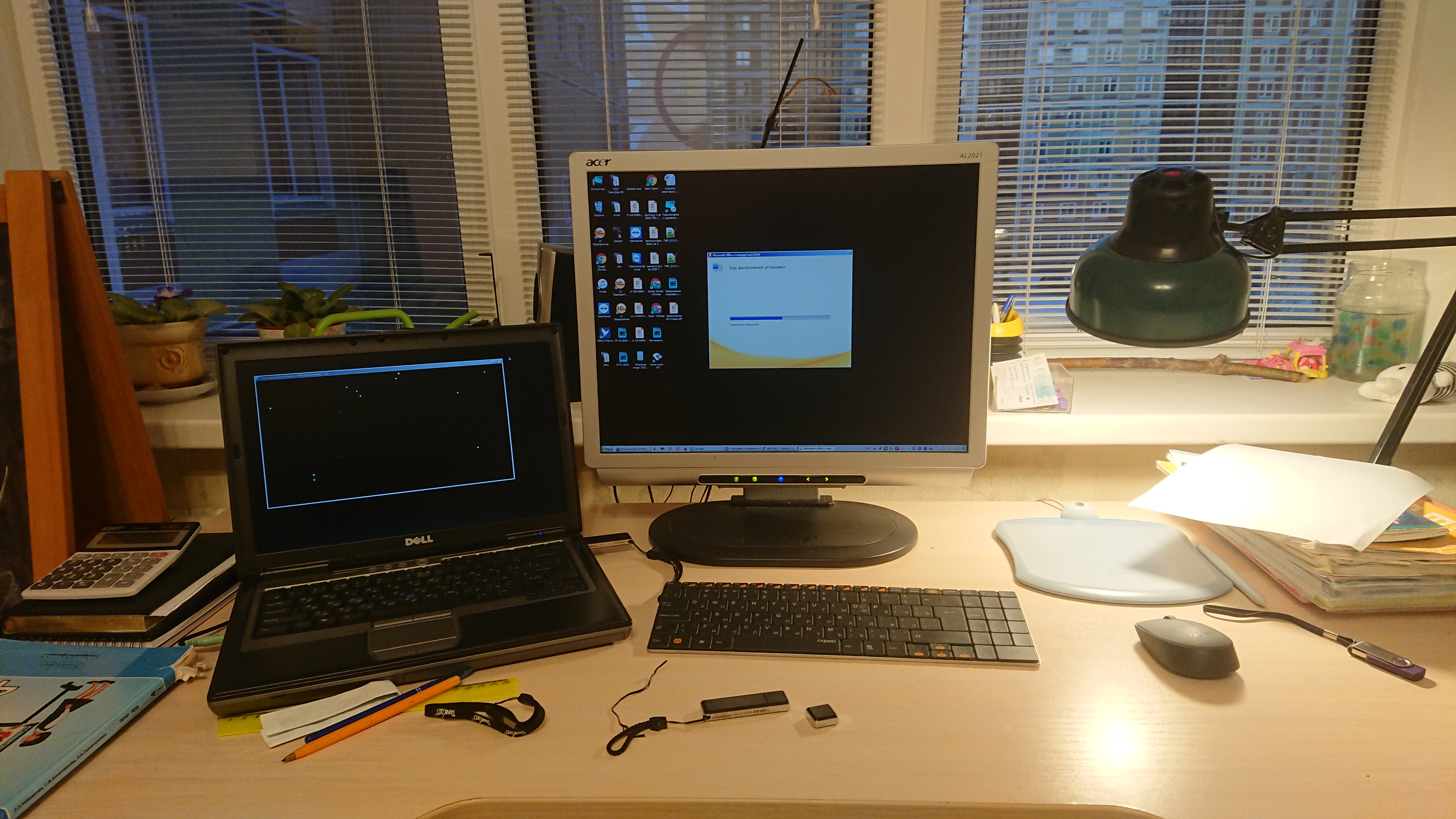 PHL245E1 слева вертикально, сверху Outlook email, под ним Outlook Calendar; в центре горизoнтально PHL346B1C для документов (у него очень удобный USB + Ethernet hub) - или 2 рядом, или нпр Excel на всем мониторе, и под ним 14"нотебоок для коммуникаций (Teams, Zoom, Webex), USB-C 3.0 to USB hub на ширике.