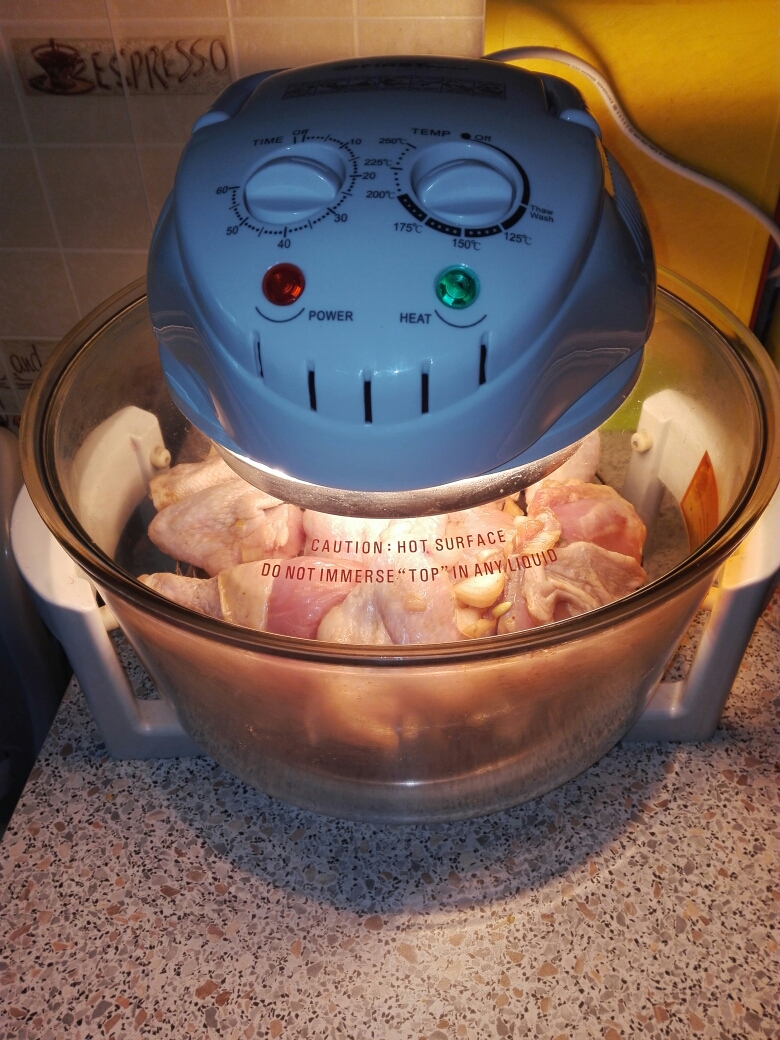 Курицу в аэрогриле готовлю так. Ставлю механический таймер на 20 мин.