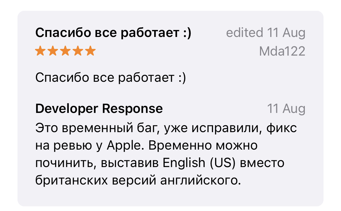 Понравился отзыв на них в аппсторе: да, понимаю, что это после редактирования, но выглядит забавно: простите, что всё работает, в следующей версии исправим, пока же накосячьте, пожалуйста, сами с настройками ?