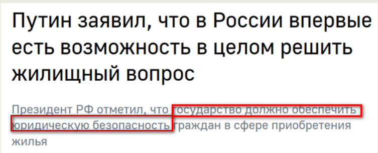 Это он, кстати, сказал позавчера, 24 августа 2021 года. Ну потому что это важно - наконец-то появилась такая возможность, так что сейчас всех и обеспечат, тем более что за дело взялся легендарный "решала" Мутко. Правда, Мутко в основном решала по всяким мутным спортивным схемам, но, может, и с жильем что-нибудь намутит. Тут главное - юридическая безопасность граждан.