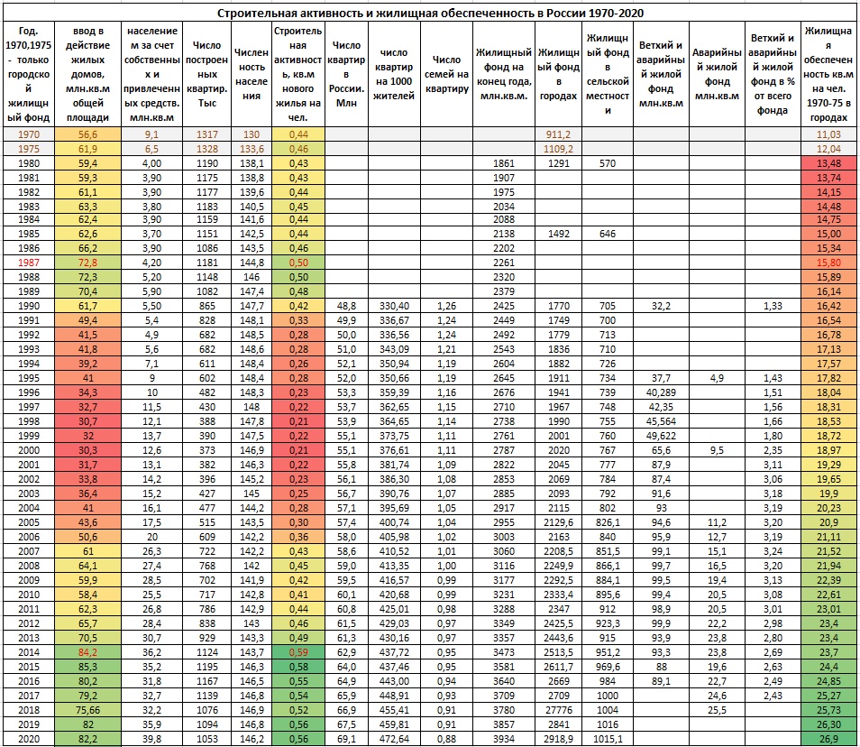 И как красиво обсуждать статистику... Но все упирается ровно в одну вещь. Насколько среднему человеку стало доступно жилье... А тут уже далеко не только от квадратных метров зависит...