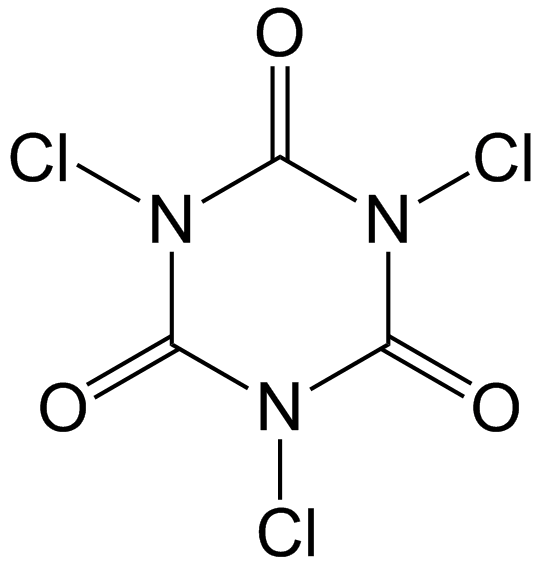 When TCCA instead comes in contact with or is wetted/moistened by a small amount of water and does not dissolve, it can experience a chemical reaction, generating heat and causing the decomposition of the chemical, which in turn produces toxic chlorine gas and can produce explosive nitrogen trichloride.