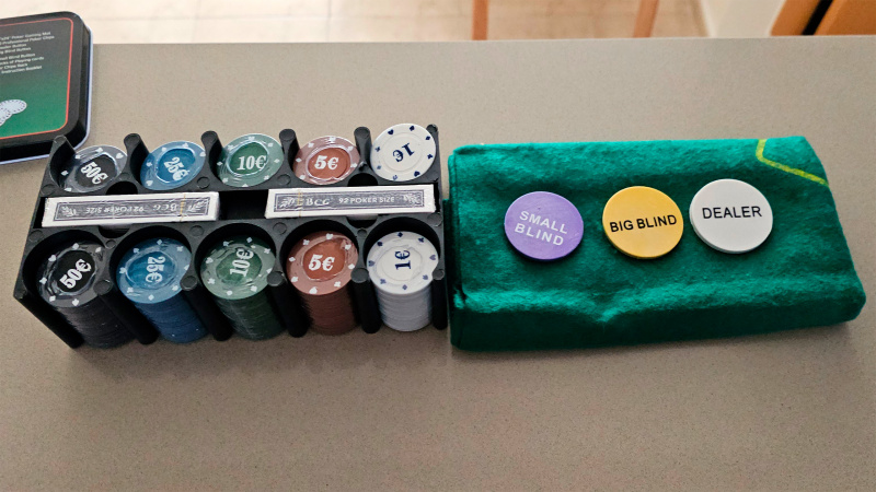 Мы играем так. Сначала договариваемся, на какую сумму от каждого можно покупать фишки. Обычно это 100 евро. На эту сумму из кассы набираются фишки, устанавливаются лимиты: для входа в торговлю и шаг повышения ставок. И есть договоренность, что самый максимум, на который разрешается докупать фишки из банка в случае проигрыша - это, например, те же 100 евро. То есть если человек проигрался, но хочет продолжить, он может потратить еще 100 евро. Но если и их проиграет - все, развлечение окончено.