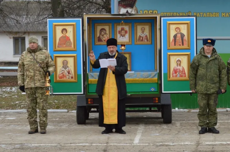 А я один заметил, что батюшка благословляет воинов двумя перстами?