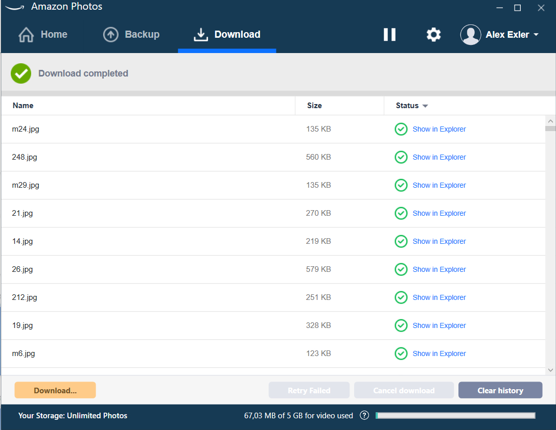 Менее чем за сутки все 213 тысяч файлов и папок благополучно восстановились, только на одном файле был сбой, но при нажатии "Retry Failed" и он благополучно скачался. Замечу, что изображения восстанавливаются с датой и временем съемки, так что с последующим отбором по годам и месяцам нет никаких проблем.