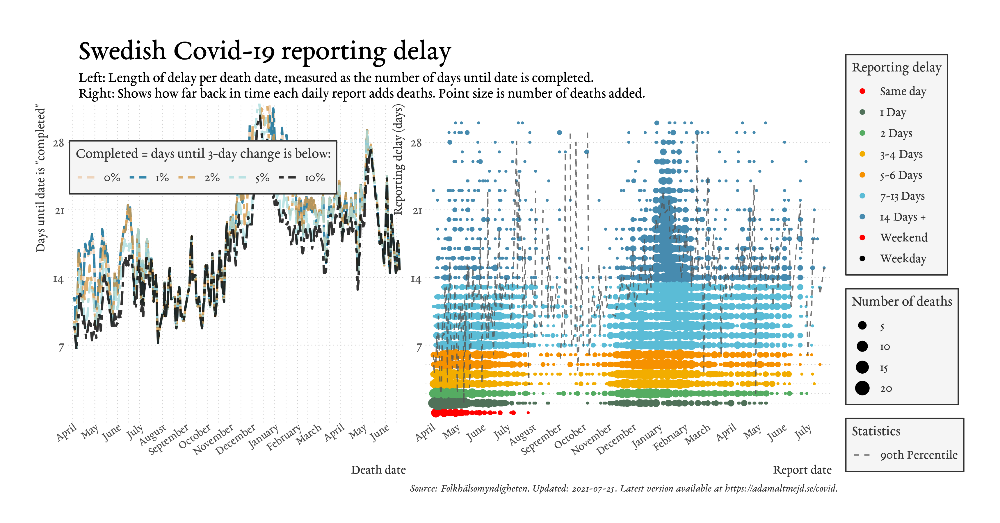 Почему-то именно шведы практически всю эпидемию отличались правкой показателей "задним числом". Сначала вдруг за один день сразу выкатывали "валовые" чуть ли не недельные показатели, потом могли их переправить, а уже только потом "раскидывали" их по конкретным датам (и через несколько дней суточные показатели за прошлый период опять менялись).