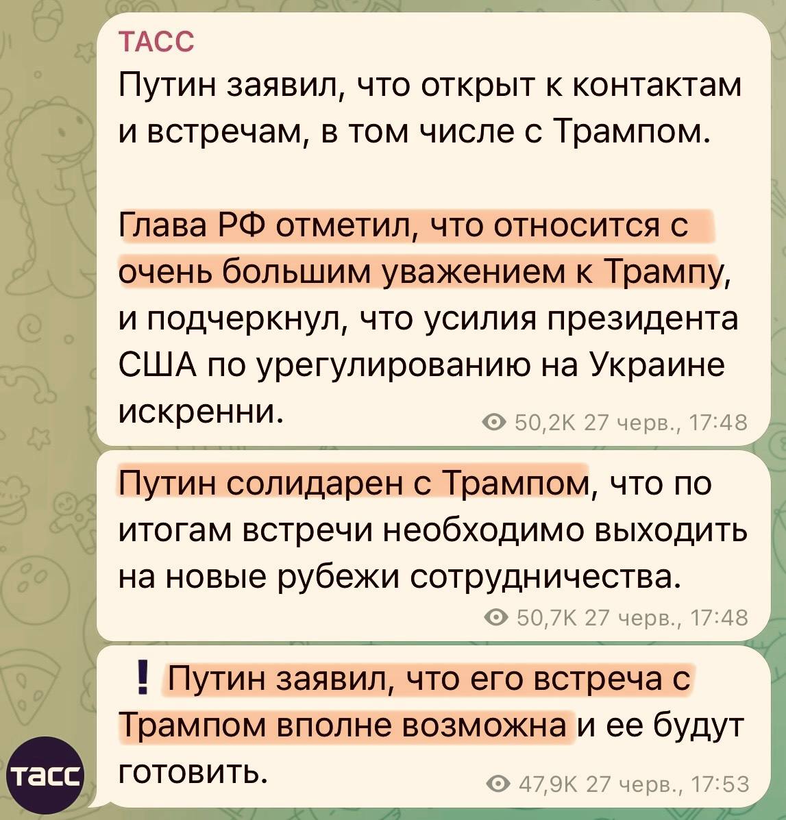 ПРЕЗИДЕНТ СОЕДИНЕННЫХ ШТАТОВ АМЕРИКИ ДОНАЛЬД ДЖ. ТРАМП честно признался, что это именно он не дал Израилю добить режим аятолл в Иране. Ну, ему же хотелось получить Нобелевскую премию мира, о чем он не раз уже говорил. А тут и Израилю помешал, и сам типа как нанес удары, хотя их эффективность уже неоднократно ставилась под сомнение.