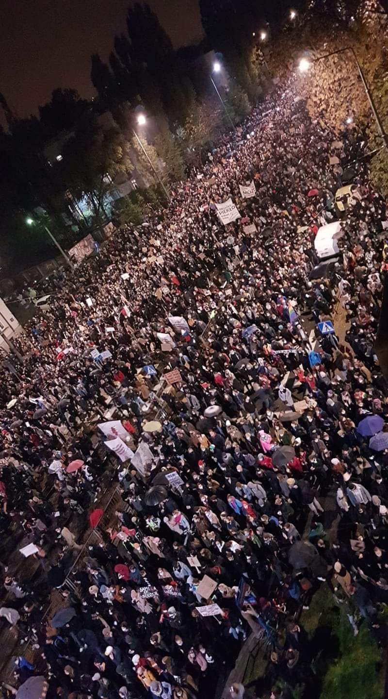Спустя несколько часов после того, как судьи объявили свое решение, сотни людей вышли на акцию протеста к Конституционному суду, нарушив антиковидные ограничения, после чего прошли к офису партии «Право и справедливость».