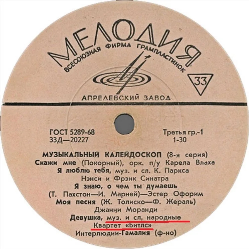 Черт, летит время. Моё знакомство с Битлз началось с этой советской пластинки.Приятная подборка. А было мне лет 10. Не помню что было на другой стороне.