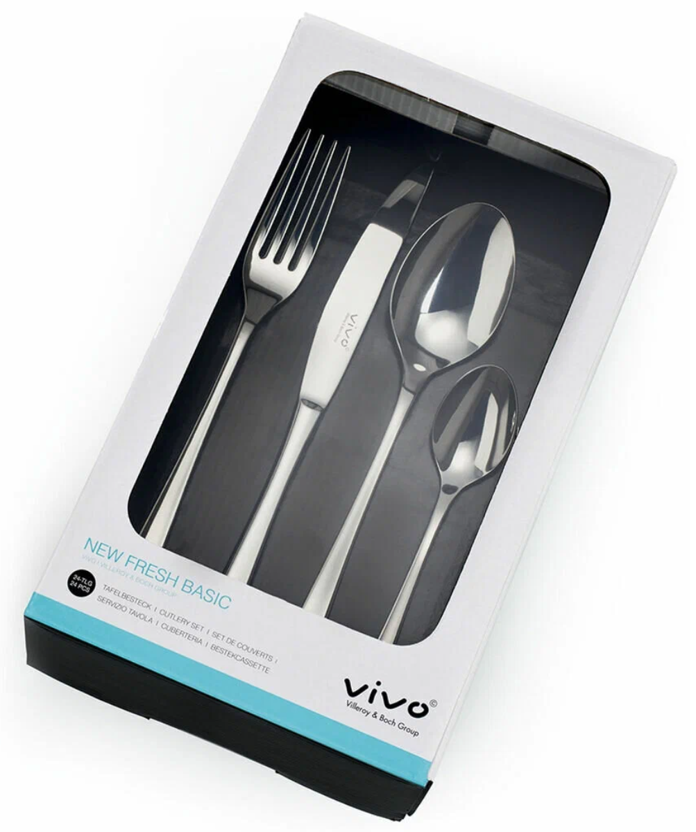 Столовые приборы очень элегантные, легкие и с красивой линией. Они пришли не в коробке, а в отдельных упаковках по одному на место за столом. Лично для меня это не создало проблем, хотя коробка для хранения была бы более удобной. К сожалению, ножи начали ржаветь после нескольких моек в посудомоечной машине