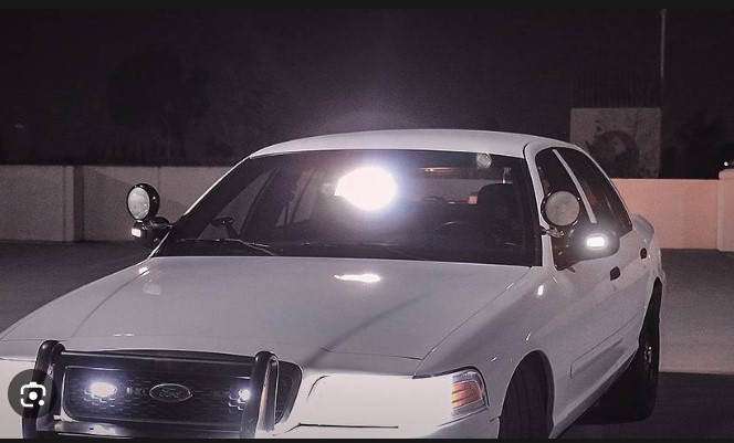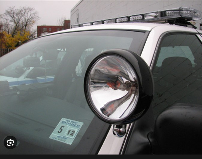 это внешняя фара, которой вручную (механически) можно управлять для освещения отдельных участков при патрулировании. Например, машина едет по улице, а посветить нужно в переулок.