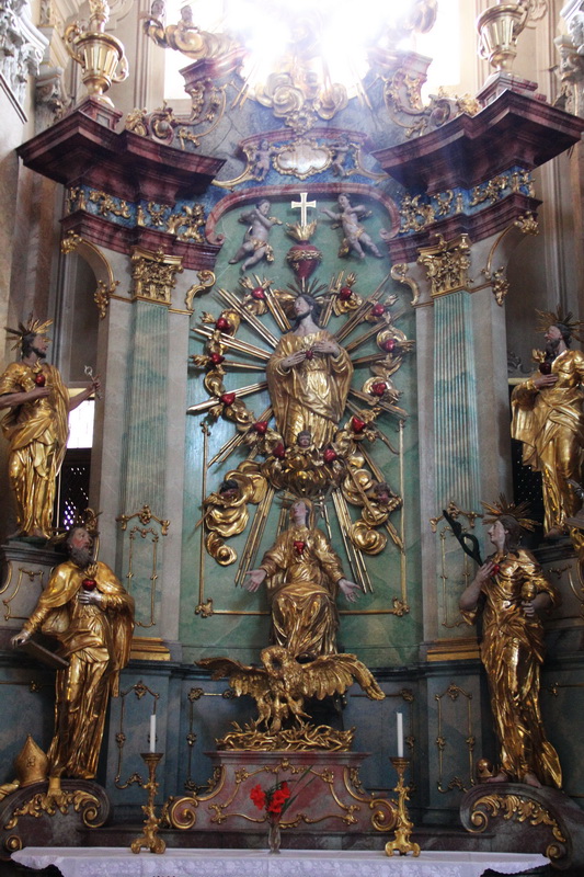 Внутри храма - уникальные резные алтари со скульптурами, сейчас продемонстрирую.