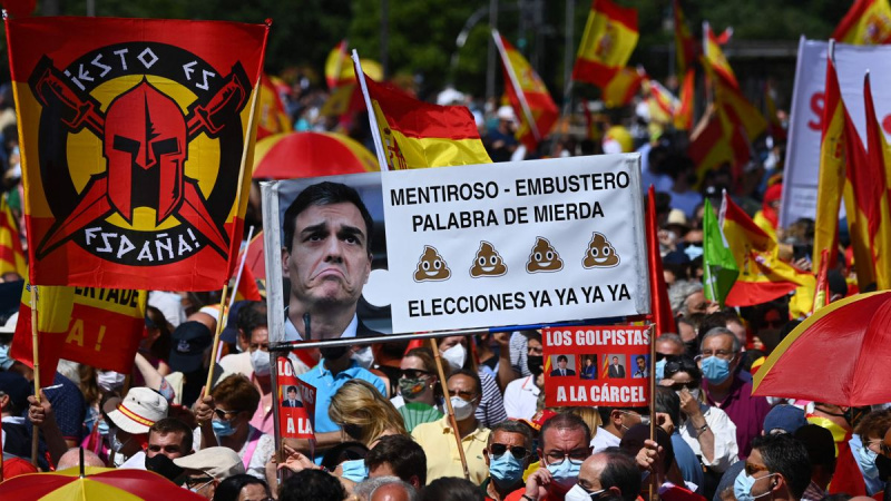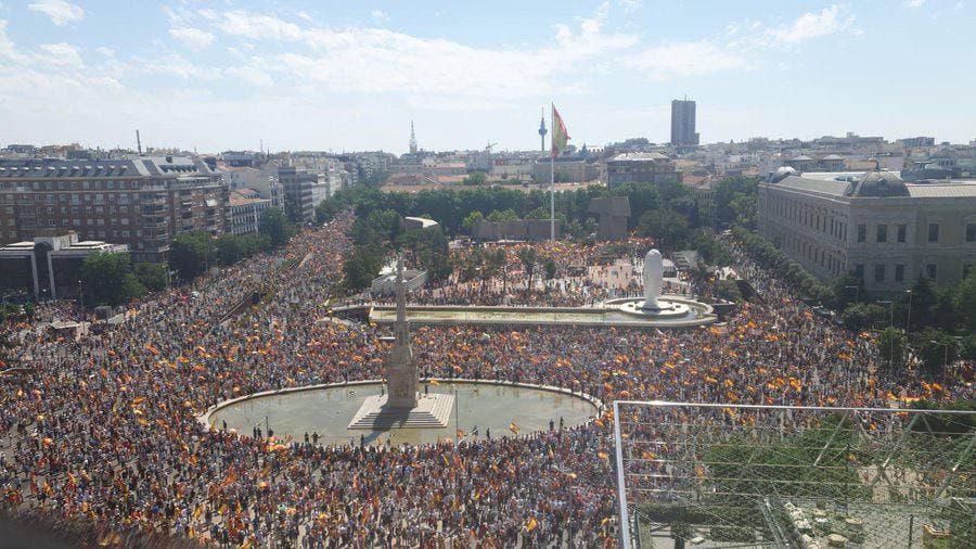 В Испании сейчас идет определенная веселуха с помилованием каталонских политиков, осужденных за попытку мятежа и экономические преступления. Премьер Санчес обещал это помилование каталонским партиям, за что получил их поддержку, и он это обещание, похоже, стремится выполнить. В Каталонии этому обстоятельству, понятное дело, радуются, а вот правые испанские партии резко критикуют Санчеса, и вчера, в воскресенье, в Мадриде прошел большой митинг протеста, на который, по данным национальной полиции, собралось 25 тысяч человек, однако там и по фотографиям видно, что народу намного больше, да и муниципальная полиция насчитала на этом митинге 125 тысяч человек.