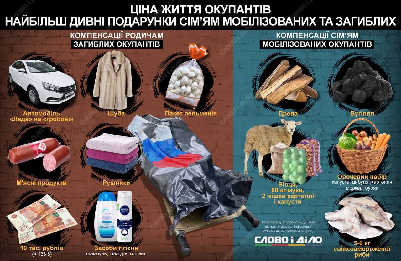 А если мобилизованного убьют, то вполне возможно, что женщина, кроме этого, еще и получит пакет пельменей.
