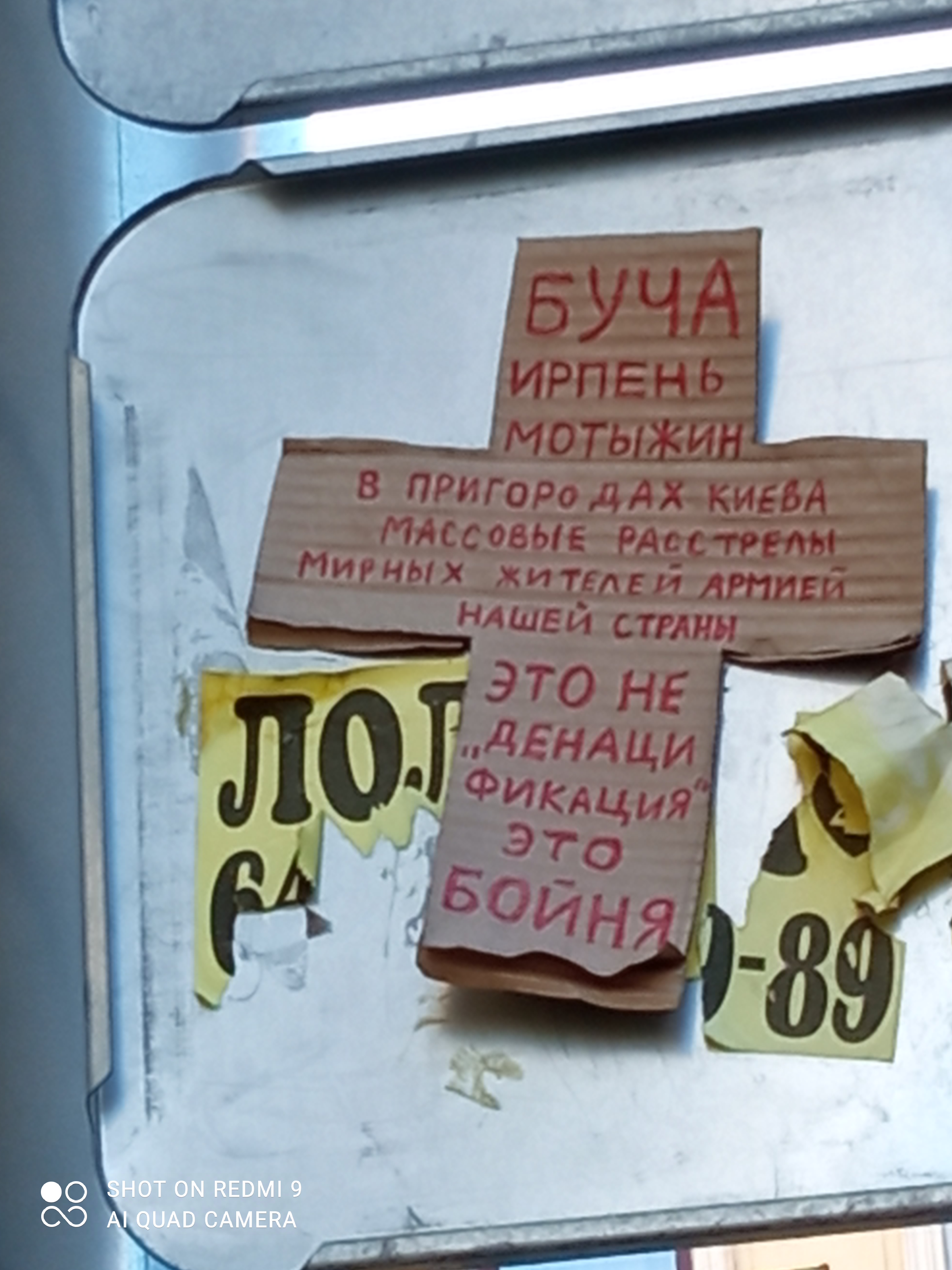 Хотя объявление вполне политически выдержанное. Ни слова "война", ни Хуйло не обсуждаются. С другой стороны, автор наверняка понимал(а), что могут поймать и придется объяснять, что имелось ввиду и против чего именно выступает автор.