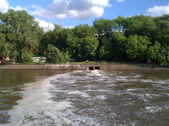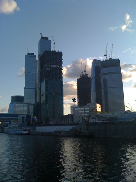 Покатался на теплоходике по московской речке-мутантке. С воды некоторые районы смотрятся очень даже интересно. Например, недостроенный Сити.