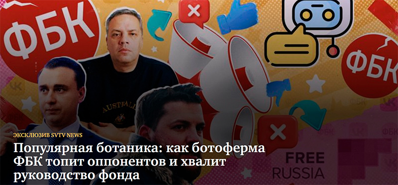 По Сети активно репостят статью в SVTV.org "Популярная ботаника: как ботоферма ФБК топит оппонентов и хвалит руководство фонда". Мне тоже присылали ссылку на эту статью и спрашивали, что я об этом думаю.