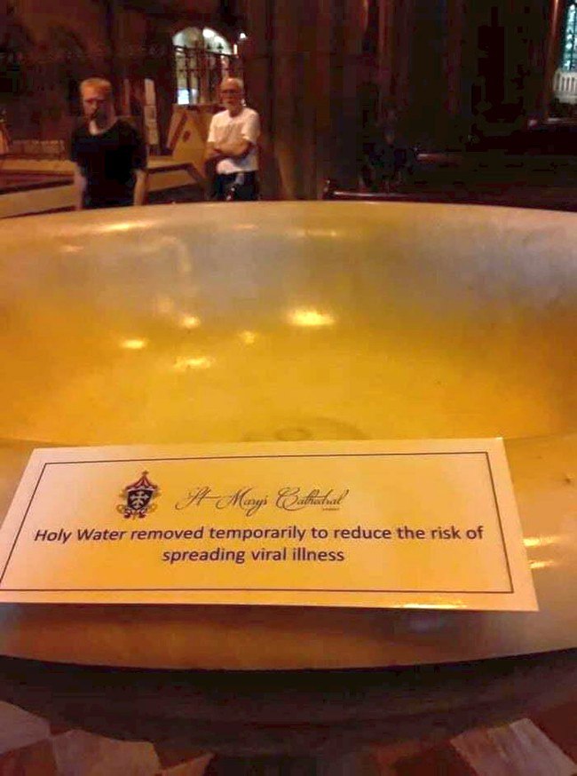 Сегодня ПЦУ объявила, что на период карантина нужно уважительно отнестись к требованиям государства, отказаться от целования икон и объятий, оставить только поклоны, без поцелуев и контактов. Зато с одноразовой посудой. Гуглопереводчик в помощь))