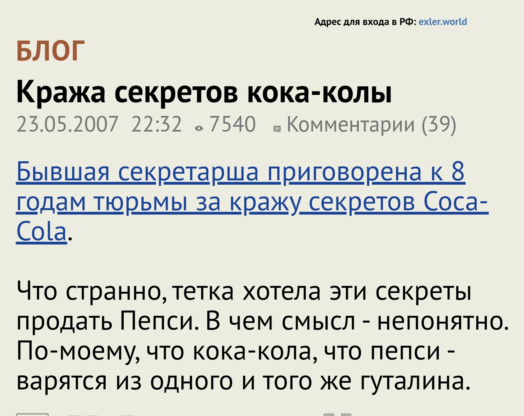 Попалась мне тут на глаза одна старая история (2006 год), о которой я не слышал. О том как трое сотрудников Coca-Cola пытались продать коммерческие секреты компании PepsiCo, и что из этого в результате вышло.