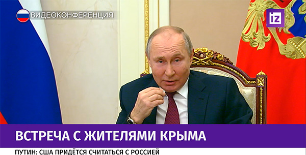 «Мы хоть они думают, что мы такие же, как они, но мы другие люди, у нас другой генетический и культурно-нравственный код. Но умеем отстаивать свои собственные интересы. И мы будем с ними работать, но в тех областях, в которых мы сами заинтересованы. И на тех условиях, которые мы считаем выгодными для себя. И им придется с этим считаться», — сказал президент на встрече с представителями общественности Крыма.
