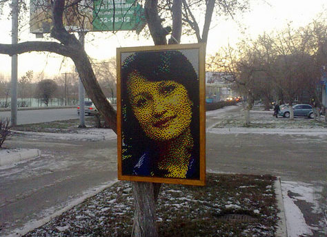 Да, мозаика из канцелярских кнопок, выложенная по пошленькой, в общем-то, фотографии (вопрос "почему пошленькой, она же в одежде?!" не стоит задавать). Полгода потратил. Молодец. Земляк. Романтик. Человек. Человечище. Глыба. Руку жмем и ногу. Достойное занятие себе придумал.