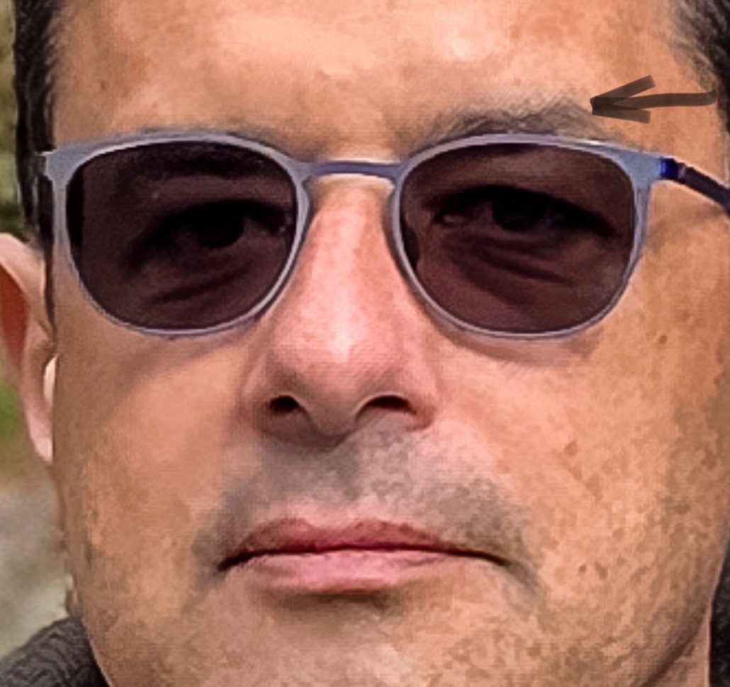 Там кроме перешарпа ещё и фирменная самсунговская акварель. Плюс совсем странные артефакты в виде диагональных полосок на брови, губах и носу...