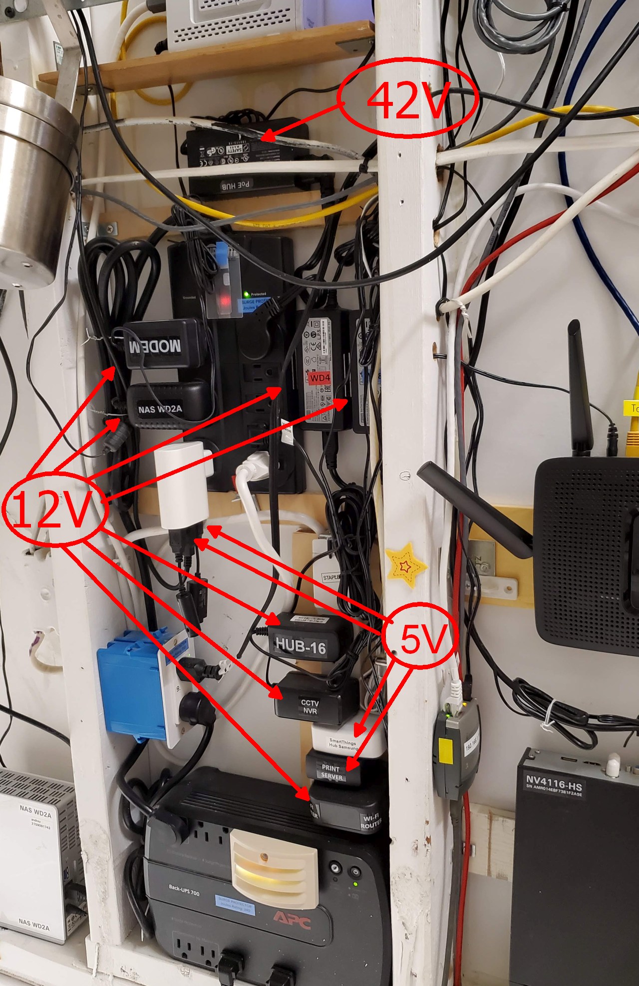 На самом деле не очень. Я у себя насчитал три варианта - 5V (закрывается при наличии "розетки" USB на UPS), подавляющее большинство на 12V и один из вариантов на 36-42-46 у PoE (Power over Ethernet) свичей.