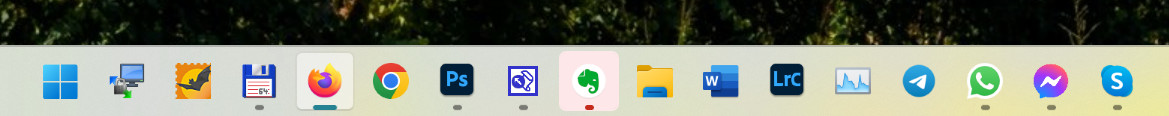 К кнопке "Пуск" Windows 11 я давно привык, и не менял ее на старый вид даже когда были установлены какие-то специальные программы. А тут все-таки пришел к выводу, что и старый вид панели задач (см. ниже), когда запущенные приложения и их копии показываются в виде панелек, а не пиктограмм, меня больше не устраивает.