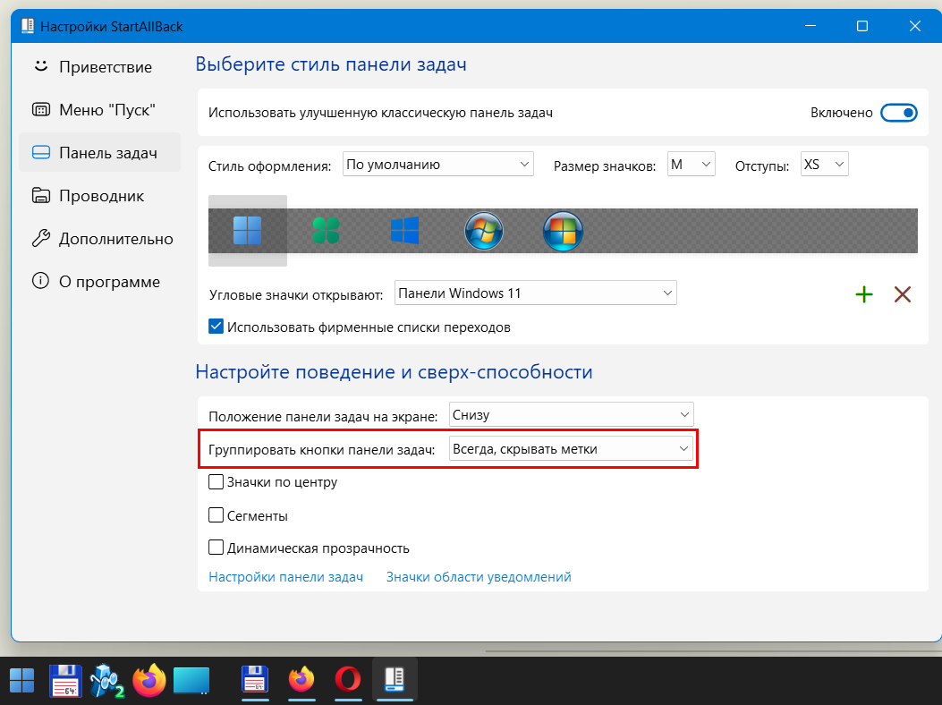 В итоге снес я приложение Startallback, которое восстанавливала старый вид панели задач, и остался на том виде, который предусмотрен в Windows 11: все приложения показываются в виде пиктограмм, под которыми появляются значки запущенных программ и открытого в данный момент приложения. Да, когда запущено несколько копий приложения (такое часто бывает с браузером, файловым менеджером и Телеграмом), то для выбора конкретной копии нужно навести мышку на пиктограмму и там выбрать. Но я к этому быстро привык, а такая панель задач смотрится на порядок более компактно, и в нее можно поместить раза в два больше часто используемых приложений. Ну и, конечно, мы помним, что Microsoft сперла этот формат у MacOS - там эта панель называется Dock и в таком виде существует спокон веков.