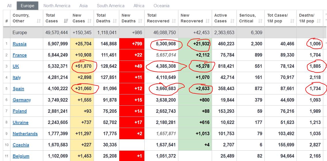 PS: для понимания, в Европе тоже идёт восстановление, причём в среднем на больший процент (4,8% против 3,7%), просто в Европе и экономика в среднем чуть больше проседала (поскольку было чему проседать). В Европе, в среднем, восстановление планируется на последний квартал этого года.
