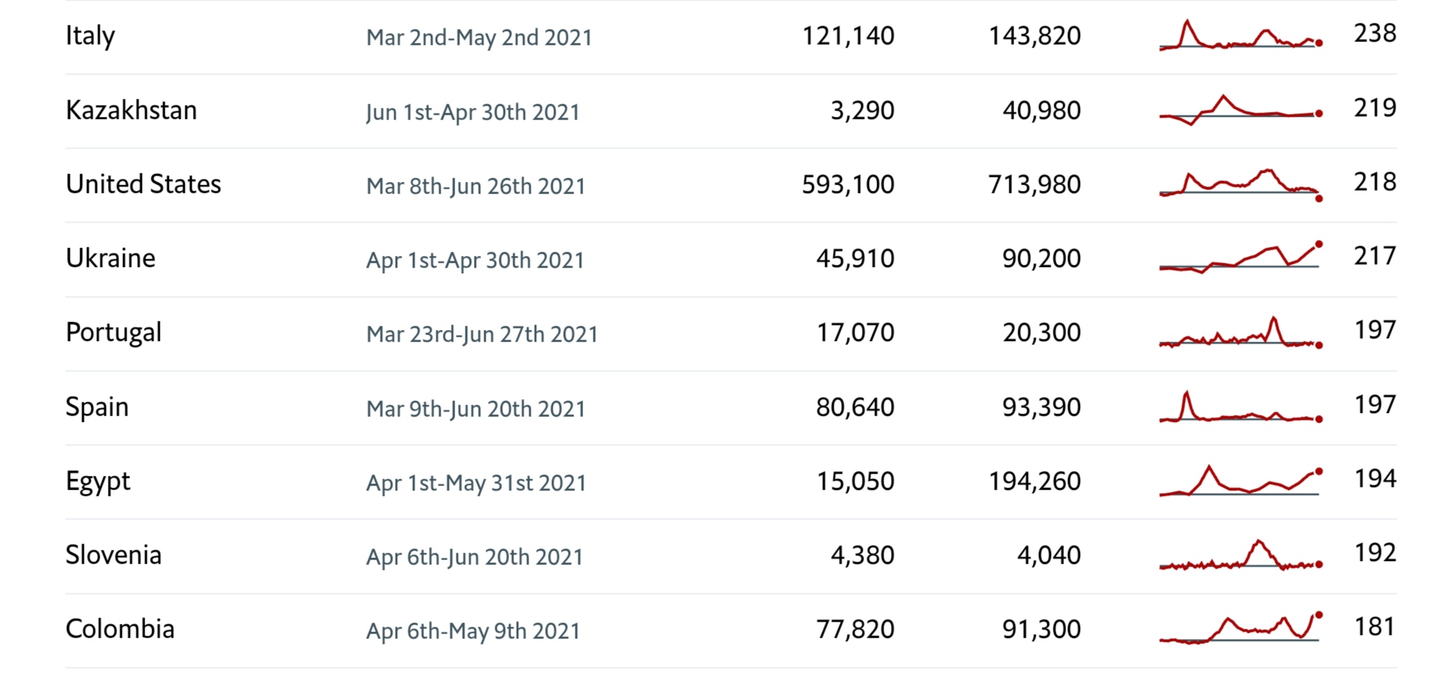 По избыточной смертности Россия уже почти всех давно обогнала(смотрим на последний столбец)
