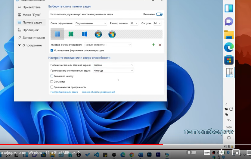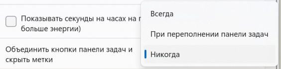 Поведение панели задач Windows 11