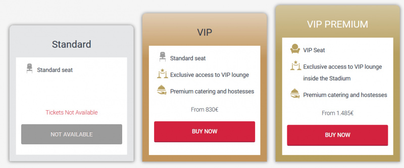 Всего за €830 - разрешат зайти в VIP-ложу, дадут там чтобы-нибудь пожрать и выпить, а смотреть матч будешь с обычного места. А вот за €1485 уже и смотреть можно будет из VIP-ложи, красота!