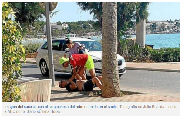 Заметка - "Dos turistas franceses reconocen y retienen al ladrón que dos días antes les había robado en la Playa de Palma".