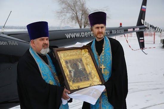 Robinson R44? Православненько! Ровно как икона с садистом и убийцей миллионов невинных, выходящим от Матроны Московской.