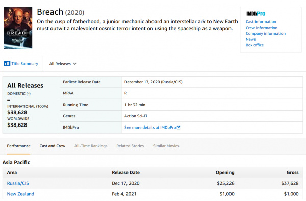 P.S. Кстати, эта "Брешь" даже в кинотеатрах вышла. В России и Новой Зеландии. В России аж $38 штук собрала. А в Новой Зеландии - трогательную тысячу.