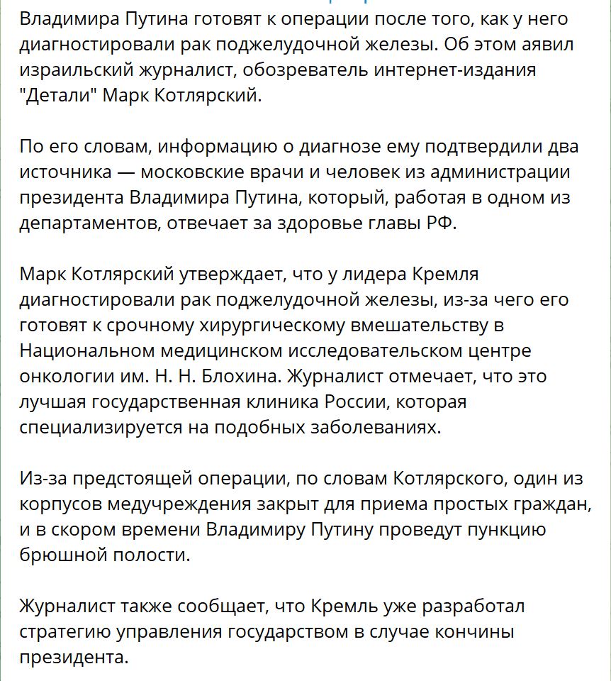А чего вы ржете? Недорогие россияне заявлениям всех этих патрушевых-шматрушевых вполне себе верят. У меня в Москве есть старый знакомый, которого я знаю лет тридцать. Интеллигентный и образованный человек. Недавно в разговоре он мне сказал, что, по его мнению, скоро всё это закончится. Вот только Польша оттяпает заметную часть территорию Украины, тогда и закончится.
