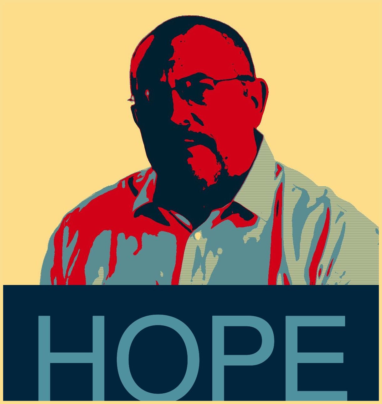 А этот негодяй изобразил голубое небо и сердечки. Плюс фигуру какого-то коротышки, у которого под воздействием ветра перемен корону сдувает с головы в 2024 году.