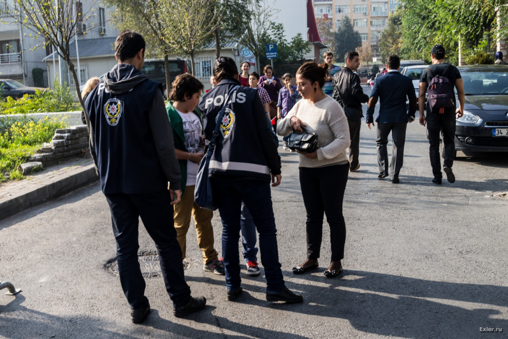 На боковых улочках также дежурили полицейские и проверяли сумки.
