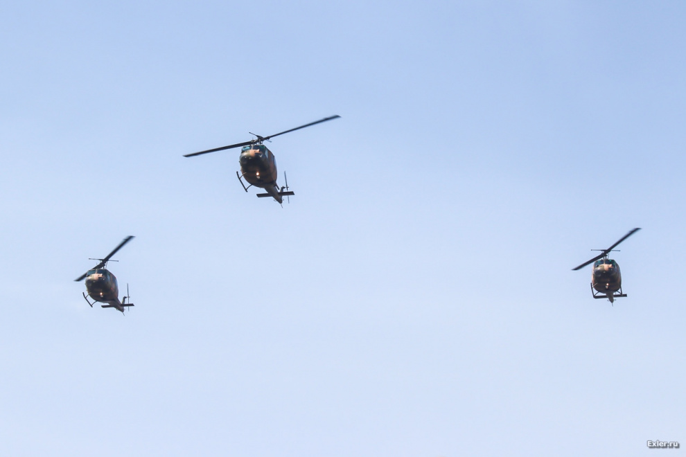 Когда парад весь прошел мимо нас, пролетело несколько вертолетов.