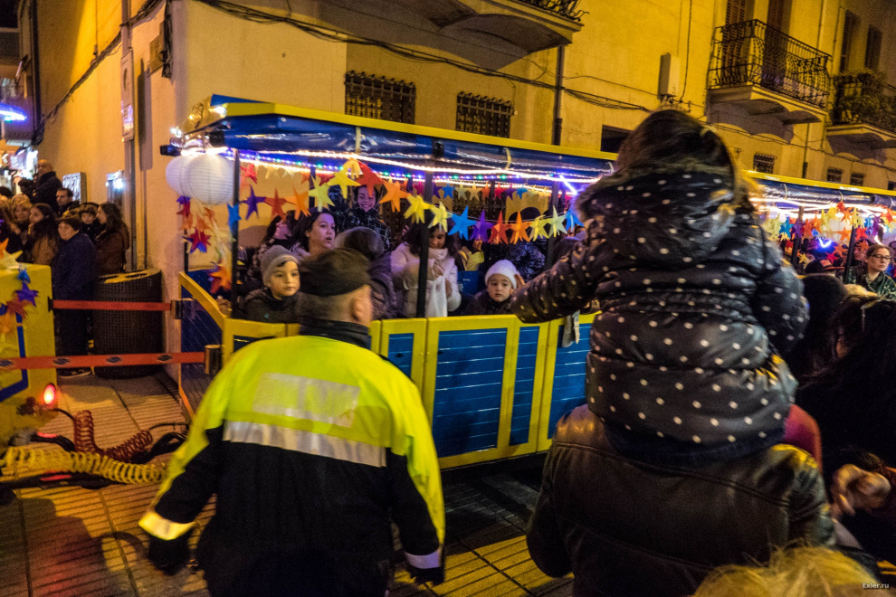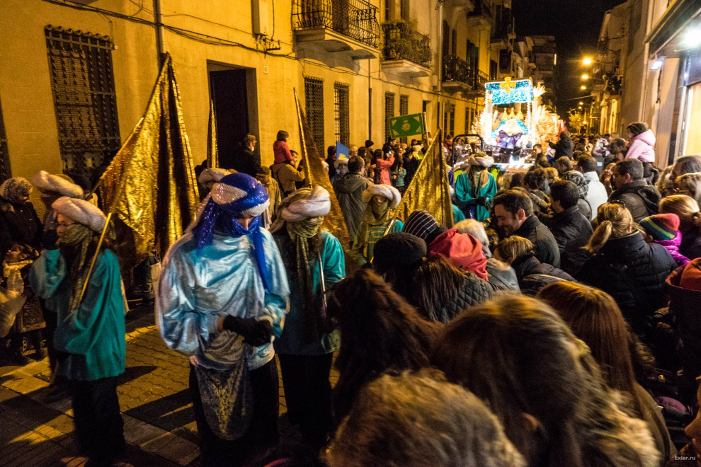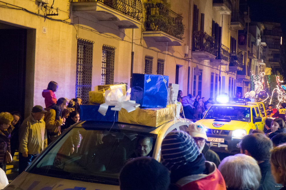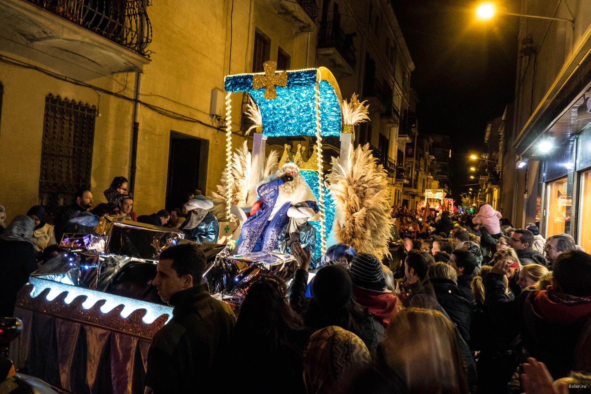 В этот день (5 января) по всей Испании идут шествия Трех королей, во время которого в обязательном порядке раздают конфеты - традиция такая. В крупных городах, типа Барселоны, Мадрида или Валенсии, во время шествия Трех королей стреляют из специальной конфетной пушки.