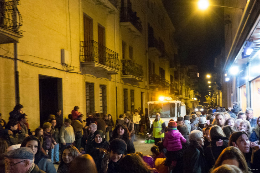 Народ собрался, ждут шествия. На встречу с королями приходит весь город, поэтому шествие от центральной площади идет змейкой через улицы, идущие к морю - чтобы народ не очень толпился и все смогли посмотреть на королей. Поэтому ждать пришлось долго - целый час.