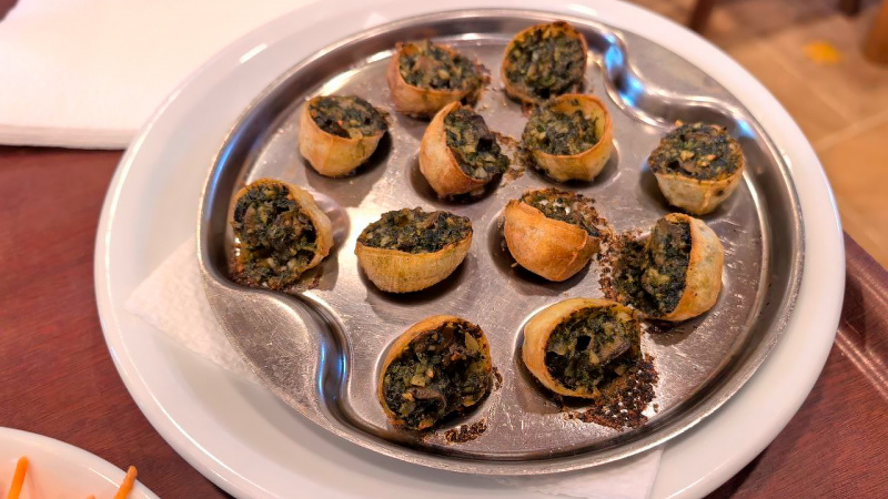 В хороших ресторанах этих улиток подают в керамических чашечках: внутри - вытащенная из скорлупы улитка в чесночном соусе, накрытая кружочком обжаренного хлеба.