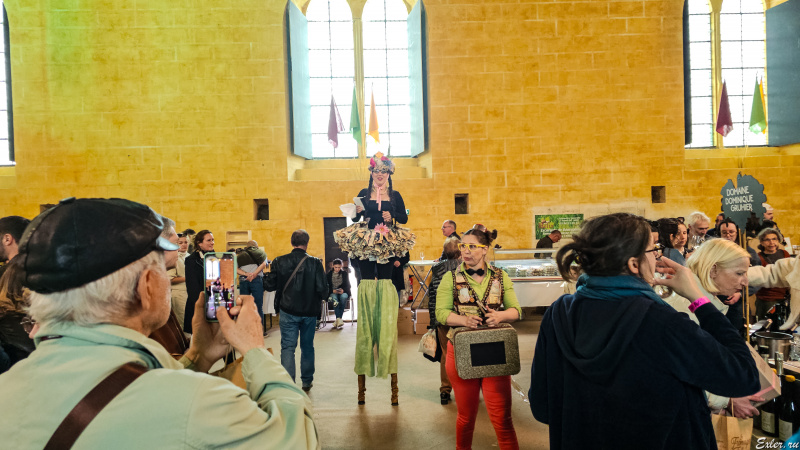 Для праздника основное помещение здания особождают от экспонатов, в нем располагаются виноделы, а также продавцы колбас, сыров и других продуктов местного производства. Народу на этом празднике - полно, можете видеть сами. Посещение праздника стоит что-то там порядка 11 евро, за дополнительный евро можно прикупить бокал для дегустаций. Но тут, к сожалению, не была предусмотрена подвеска для бокала, а свою подвеску взять из дома я не догадался. (Когда бокал держишь в руке, то крайне неудобно фотографировать.)