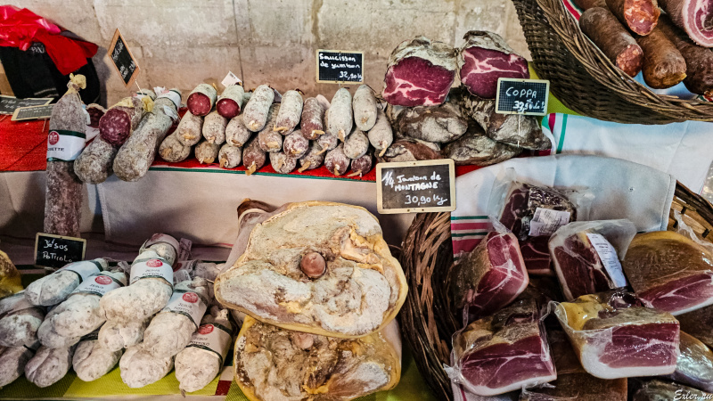 Был один большой стенд с различными колбасами и сыровяленой свининой, которая здесь называется практически так же, как и в Испании, только на французский манер - жамбон.