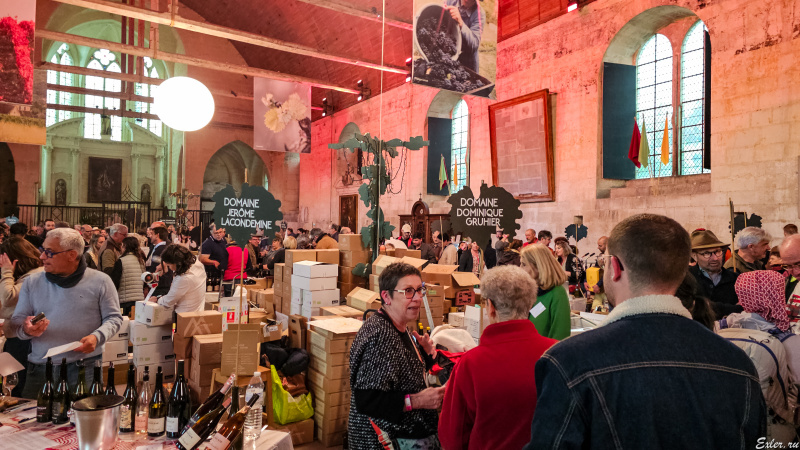 Надо сказать, что народ на празднике покупал вина ящиками. Да и мы не отставали - утащили оттуда с десяток ящиков. Это очень удобно: пробуешь, если понравилось и цена подходящая - почему бы и не купить. Мы там обнаружили одного производителя из Шабли, у которого оказались очень приличные премье-крю (каждое премье-крю в Шабли имеет свое название, всего их 40), причем всего за 16 евро - это очень дешево, особенно когда вино вполне достойное.